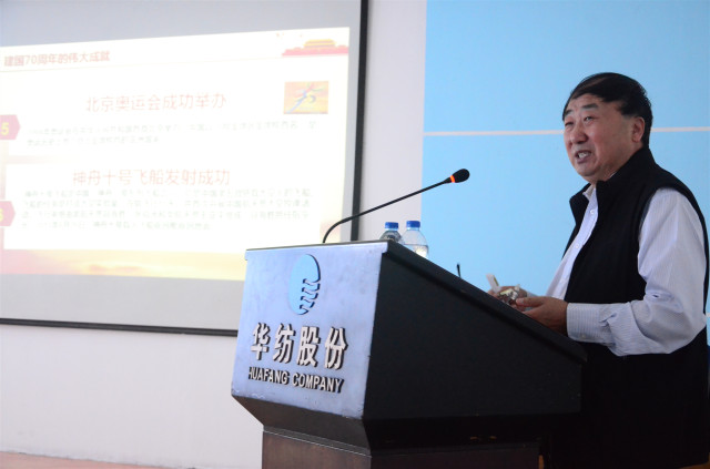 在“不忘初心、牢記使命,爭當(dāng)圓夢人”這部分內(nèi)容中,王力民結(jié)合華紡43年發(fā)展歷程和個人切身經(jīng)歷,介紹了新時代的祖國日新月異的發(fā)展歷程。他說,作為“華紡人”,深刻感悟到公司自1976年建廠以來,在黨的帶領(lǐng)下逐步成長發(fā)展,內(nèi)心充滿了幸福感和自豪感。他告誡公司廣大員工特別是黨員干部,要不忘初心,牢記建設(shè)國家、奉獻(xiàn)社會的歷史使命,在新的形勢、新的機(jī)遇下,既要做追夢人,又要做圓夢者。