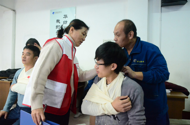 參加培訓(xùn)的安全員通過認(rèn)真學(xué)習(xí)和按照要求進(jìn)行實際操作演練,在學(xué)習(xí)心肺復(fù)蘇的操作以及AED的使用,創(chuàng)傷救護(hù)止血、包扎、固定、搬運(yùn)等四大技術(shù)的理論與實際操作基礎(chǔ)上,還認(rèn)真聆聽了中國紅十字會的發(fā)展歷程以及“三救三獻(xiàn)”的工作職責(zé)。