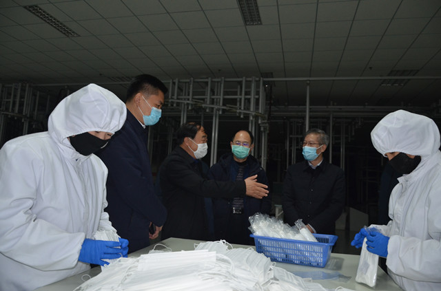 陪同參觀過(guò)程中,王力民簡(jiǎn)要介紹了公司在疫情防控方面所做的具體工作,重點(diǎn)介紹了復(fù)工后的生產(chǎn)運(yùn)營(yíng)、當(dāng)前口罩生產(chǎn)產(chǎn)能和新增清潔生產(chǎn)項(xiàng)目的進(jìn)展情況。張忠慶一邊仔細(xì)地察看生產(chǎn),一邊認(rèn)真聽(tīng)取企業(yè)情況,對(duì)公司有序推進(jìn)生產(chǎn)經(jīng)營(yíng),特別是完善產(chǎn)業(yè)發(fā)展方面的舉措給予了充分肯定,并就企業(yè)運(yùn)行保障等方面的工作做了指導(dǎo)。