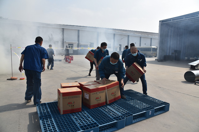 5月14日,隨著一聲火警報(bào)警聲,公司工業(yè)園綜合應(yīng)急預(yù)案演練拉開了序幕,本次工業(yè)園綜合應(yīng)急預(yù)案演練新增了服裝車間,演練規(guī)模為工業(yè)園歷次演練最大規(guī)模。演練中,在當(dāng)班值長(zhǎng)的指揮下,各救援分隊(duì)快速到達(dá)“火災(zāi)現(xiàn)場(chǎng)”,根據(jù)分開展開救援活動(dòng);保衛(wèi)科分隊(duì)滅火壓制火勢(shì),家紡成品車間救援被困人員,倉(cāng)儲(chǔ)分隊(duì)搶救物資等等。
