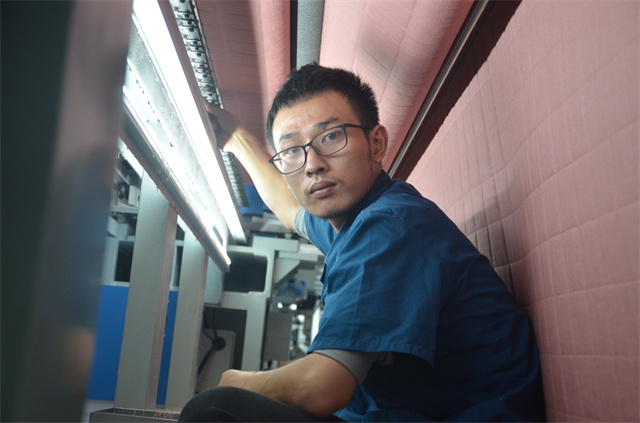 面料車間4號(hào)打底機(jī)的紀(jì)建峰,進(jìn)入公司已10年有余,從事過(guò)多個(gè)機(jī)臺(tái)的操作工種。