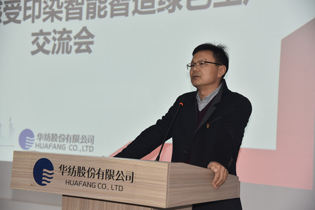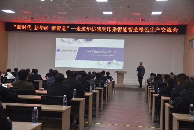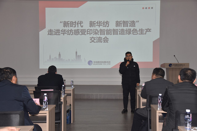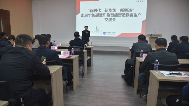 公司黨委副書記盛守祥代表公司,向與會領導及會員單位代表介紹了公司“退城進園”暨“智能綠色工廠建設項目”、升級印染全流程的智能制造等情況,并圍繞公司近年來大力推進企業(yè)轉型升級和新舊動能轉換工作,重點介紹了公司在智能智造、綠色生產方面的主要做法與經驗。公司副總工程師王國棟對公司近年來推動轉型升級及打造“智慧華紡”的整體發(fā)展成效,作了專題報告。