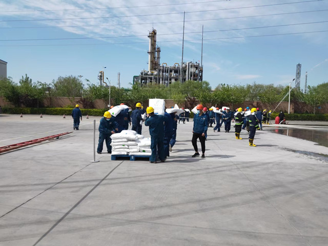 當天演練中,在當班值長指揮下,各救援分隊快速到達“火警現(xiàn)場”,根據(jù)分工展開“應急救援”。保衛(wèi)科分隊滅火“壓制火勢”,家紡成品車間分隊救援“被困人員”,物資管理部分隊“搶救物資”等等。
