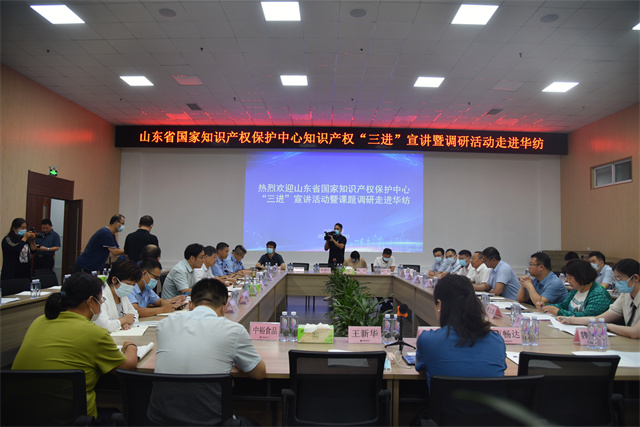 導讀:7月29日,山東省市場監(jiān)管局市場稽查專員蘇鵬、省國家知識產(chǎn)權保護中心副主任尹強民一行18人,來到華紡股份有限公司開展知識產(chǎn)權“三進”宣講暨調(diào)研活動。