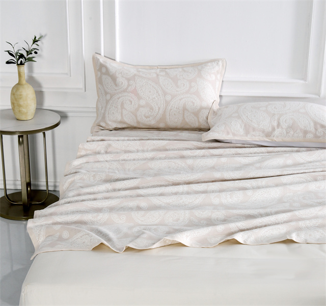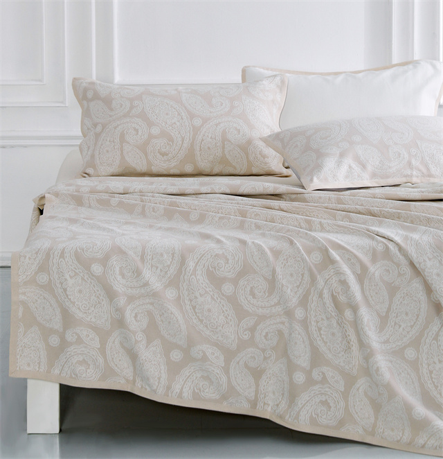 漢麻提花涼席件套以“程朱理學(xué)”中強調(diào)的學(xué)以致用,遵守自然規(guī)律,崇尚自然之理的深邃思想作為指引。在產(chǎn)品設(shè)計方面,獨具匠心地采用了佩斯利提花花型,儒雅深沉的中國文化與圖案繁復(fù)的國際化花紋相互碰撞,奇妙地展現(xiàn)出中西結(jié)合的神秘而又迷人的獨特氣質(zhì);在技術(shù)層面,采用了《麻織物亞麻織物柔軟滑整理方法》柔軟專利技術(shù),經(jīng)過處理的麻織物手感柔軟富有彈性,解決了麻織物以往手感粗硬的難題;在功能方面,具備抗菌防霉、舒爽散熱的出色特性。產(chǎn)品在傳承悠久文化的基礎(chǔ)之上,尤其突出了創(chuàng)意性和功能化。從原材料的精心選取到終端產(chǎn)品的設(shè)計生產(chǎn),全程遵循工匠精神,能夠出色地滿足消費者個性化、品質(zhì)化、情感化的多元消費需求,為消費者帶來前所未有的舒適體驗和文化享受。