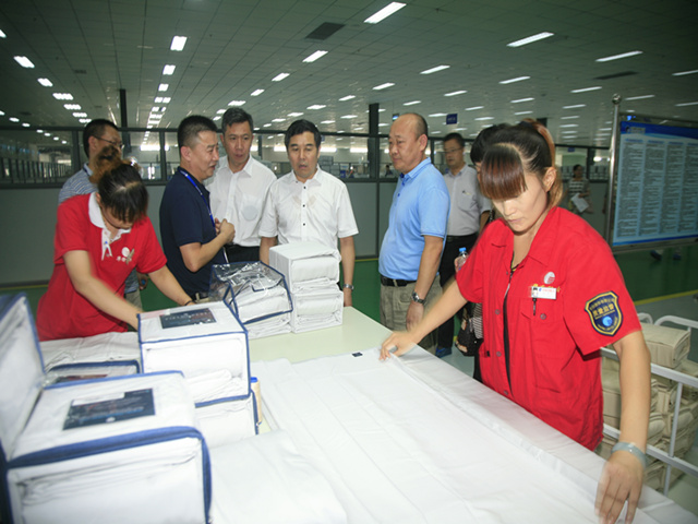 座談結(jié)束后,張繼剛一行在副市長王文祿、公司總經(jīng)理閆英山及班子成員邱淑芳、劉水超、孫中然陪同下,參觀了工程技術(shù)研究院、花二車間、中控室、家紡成品展廳、家紡成品車間、智能立體倉庫等處所。
