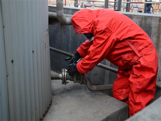 兩名穿戴防護(hù)裝備的人員關(guān)閉了相關(guān)的氨水罐、氨水泵閥門,并安排人員迅速設(shè)立警戒線,禁止無關(guān)的人員及車輛進(jìn)入。查看氨水罐圍堰是否有泄漏點(diǎn),用鐵锨鏟土進(jìn)行進(jìn)行封堵,防止污染物排出,造成環(huán)境污染。同時(shí)對已進(jìn)入排水溝的氨水用大量的稀釋水進(jìn)行稀釋,使污染物達(dá)到外排條件,各閥門關(guān)閉后泄露得到控制。整個(gè)過程緊張有序。
