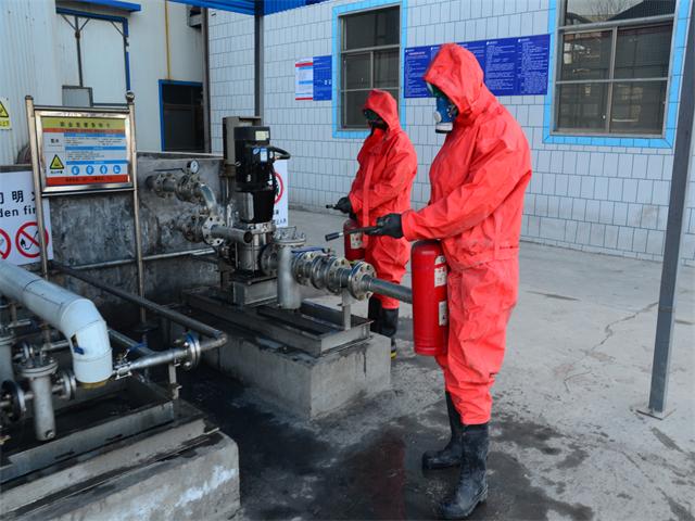 這一幕正是動力公司2月20日進(jìn)行防泄漏演練時(shí)的情形。當(dāng)日,動力公司按照公司安保部制定的年度應(yīng)急預(yù)案演練大綱,進(jìn)行了一次氨水泄漏應(yīng)急處理演練。同日,面一車間進(jìn)行了導(dǎo)熱油泄漏現(xiàn)場處置演練。經(jīng)安保部和部門主管測評,兩次演練均符合流程標(biāo)準(zhǔn),達(dá)到了預(yù)期效果。