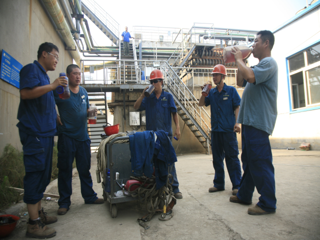 公司污水處理改造工程近來正在緊鑼密鼓地推進,大家盯靠在現(xiàn)場,實在太渴了,就咕咚咕咚喝一通綠豆湯。他們的目標是:保質保量,全力投入,爭取提前完成這項重點工程。