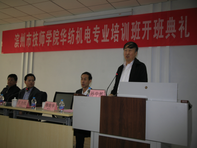 4月3日,公司與濱州市技師學(xué)院在公司工程技術(shù)研究院舉行“華紡機(jī)電專業(yè)培訓(xùn)班開班典禮”。開班典禮在莊嚴(yán)的國(guó)歌聲中開始,濱州市技師學(xué)院黨委副書記、院長(zhǎng)丁愛(ài)軍,黨委委員、副院長(zhǎng)穆俊華,公司黨委書記、董事長(zhǎng)王力民,總工程師羅維新在主席臺(tái)就坐,并為學(xué)員代表授書,丁愛(ài)軍和王力民分別發(fā)表講話。