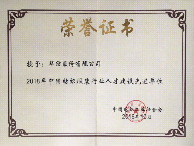 來自不同領(lǐng)域的專家學者圍繞紡織服裝人才建設(shè)進行了發(fā)言,同時,為進一步推進紡織行業(yè)“知識更新工程”人才建設(shè)培訓工作,加強紡織服裝人才隊伍建設(shè),促進行業(yè)轉(zhuǎn)型升級發(fā)展,大會還對2018年中國紡織行業(yè)人才建設(shè)先進單位個人進行了表彰。公司憑借在人才建設(shè)上取得的成績,被授予“2018年中國紡織服裝行業(yè)人才建設(shè)先進單位”稱號,副總經(jīng)理盛守祥獲得“2018年中國紡織服裝行業(yè)人才建設(shè)先進個人”稱號。